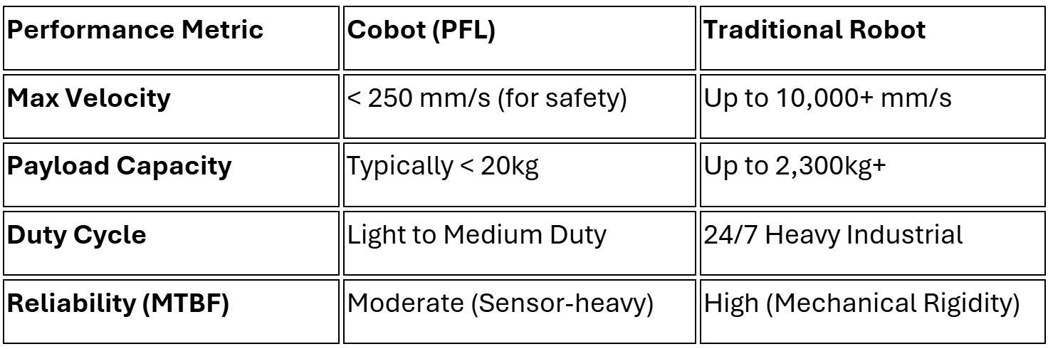 Shared Workspaces: Their PFL design allows them to work in proximity to personnel, reducing the need for traditional perimeter guarding in specific, low-energy applications.
